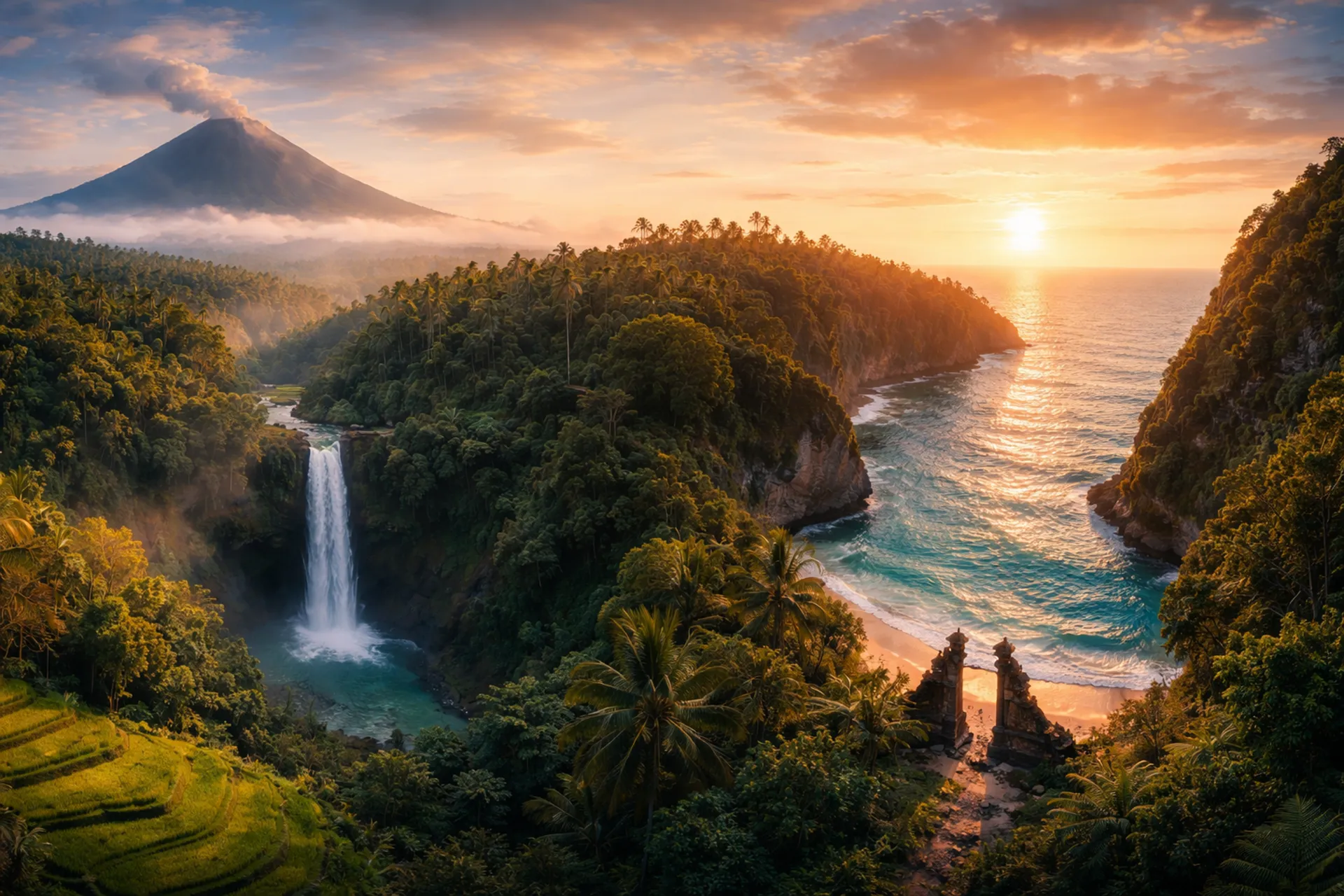 East Bali is the region most visitors never reach, and that is precisely why it belongs in a 2-week itinerary. Tirta Gangga, a former royal water palace with ornate fountains and koi-filled pools, sits in the shadow of Mount Agung. Lempuyang Temple — the 'Gates of Heaven' — frames Mount Agung through a split gate in one of Indonesia's most photographed compositions. The drive there passes through villages where life moves at a pace that modern Bali has largely left behind.