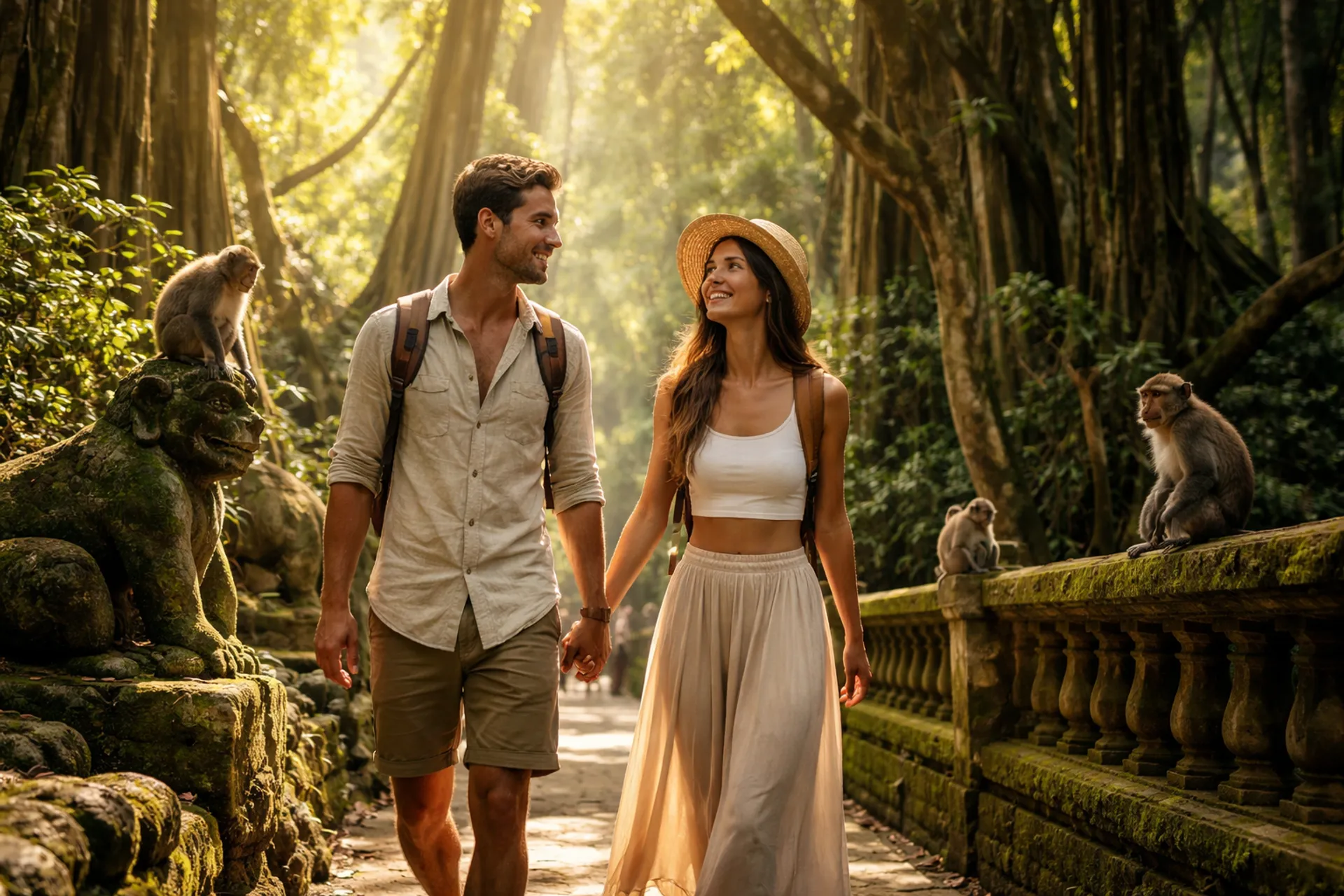 The first two days are best spent between South Bali's coastline and Ubud's cultural heartland. Tegallalang's terraced rice paddies, carved into steep hillsides over centuries, are a landscape you genuinely need to see in person. The Monkey Forest, home to over 1,260 long-tailed macaques across three temple grounds, offers both amusement and genuine cultural significance.