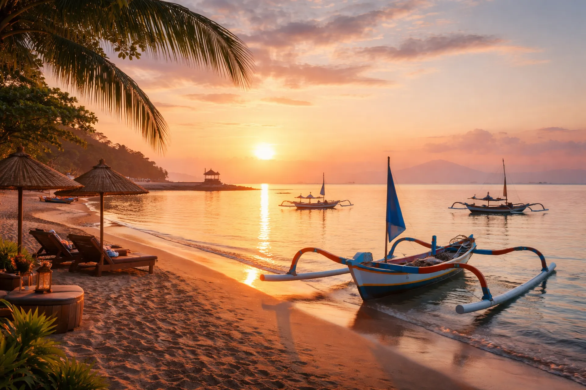 Sanur occupies Bali's east coast, facing the sunrise across the Badung Strait toward Nusa Penida. It was Bali's first planned beach resort area, developed in the 1960s when the Grand Bali Beach Hotel (now the Inna Grand Bali Beach) was built with Japanese war reparation funds. A local regulation limits buildings to the height of a coconut palm, preserving the low-rise, village-like character that has defined Sanur ever since.